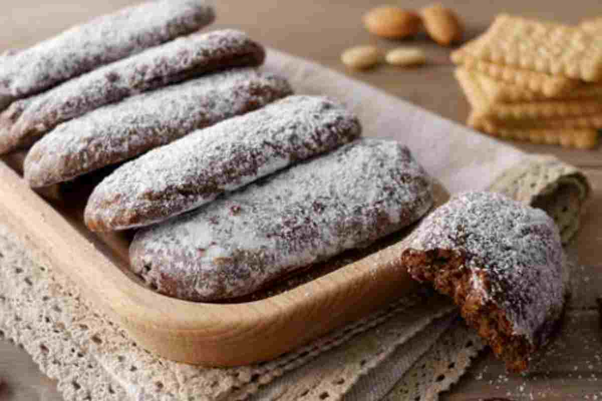 Il procedimento non richiede passaggi complicati. Si parte tritando finemente gli amaretti e i savoiardi, mescolandoli in una ciotola con zucchero, farina, cacao, cannella e lievito. Si uniscono poi le mandorle tritate grossolanamente, i pinoli, l’uvetta (precedentemente ammollata in acqua tiepida) e infine l’albume con il vino bianco. Il composto deve risultare omogeneo e solo leggermente appiccicoso, da lavorare formando piccole sagome ovali che ricordano una piccola pagnotta. I biscotti vanno infornati a 180°C per circa 15-20 minuti, finché assumono un leggero colore dorato. Una volta freddi, la spolverata di zucchero a velo li veste per la festa.