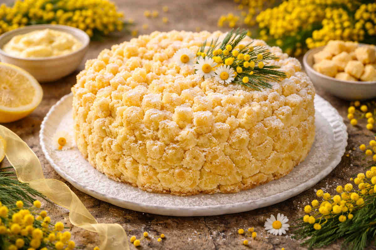 La torta mimosa è uno dei dolci più eleganti e riconoscibili della pasticceria italiana. Il suo nome deriva dall’aspetto caratteristico: piccoli cubetti di pan di Spagna ricoprono la superficie del dolce ricordando i grappoli gialli della mimosa, il fiore simbolo della Festa della Donna.